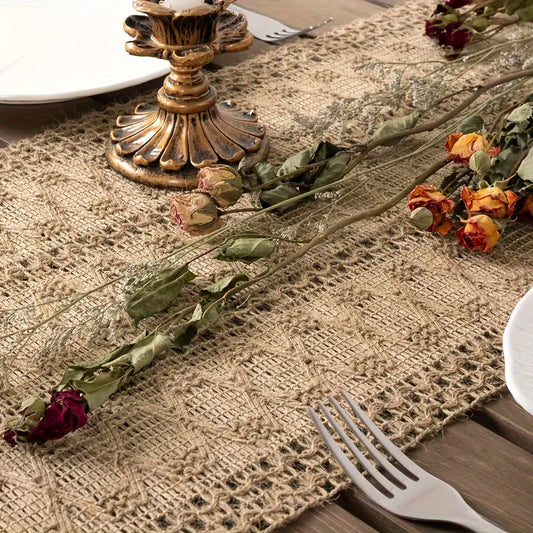 1 db szőtt poliészter asztali futó csipke szegéllyel