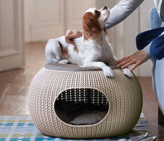 Kötött bézs kutyaágy