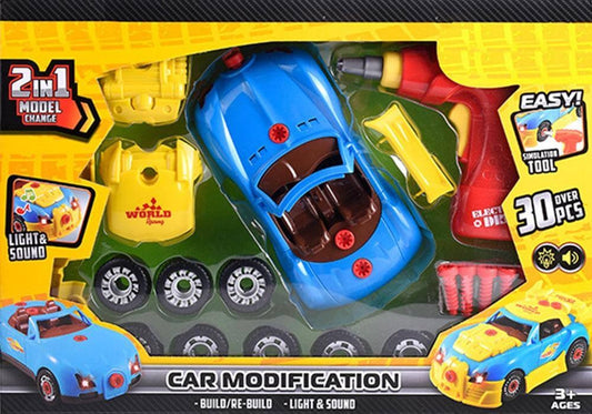 Szerelő gyermekjáték készlet, összerakható kisautóval
