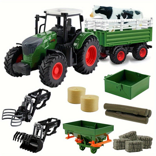 41.91cm Méretarányú Modell Traktor Játék Készlet - Tartalmazza Az Előre Rakodót, Szórót & Kiegészítőket