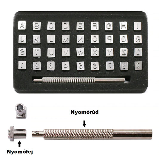 Betűnyomó ABC és számok bőrhöz.