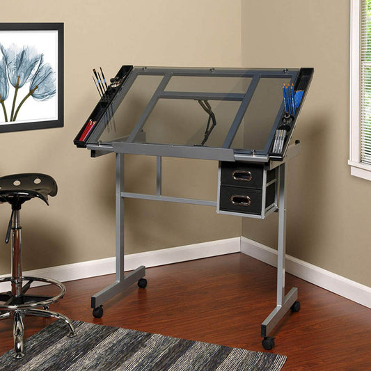 Tervező asztal dönthető,üveg asztallappal