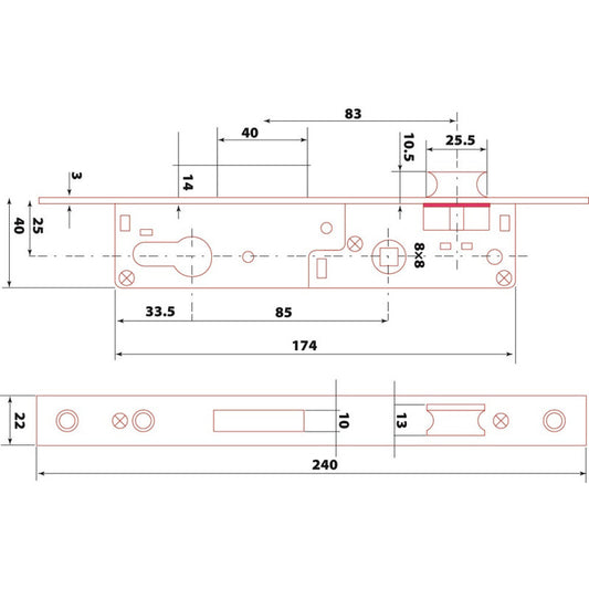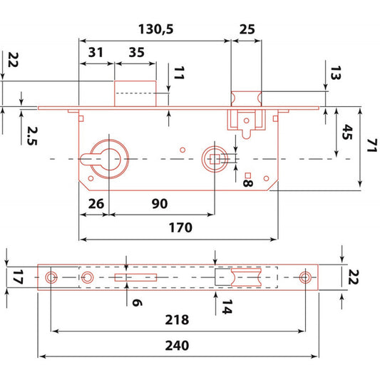 FLAME Cilinderes bevésőzár kétnyelves, 45mm×90mm×22mm×7mm, Flame