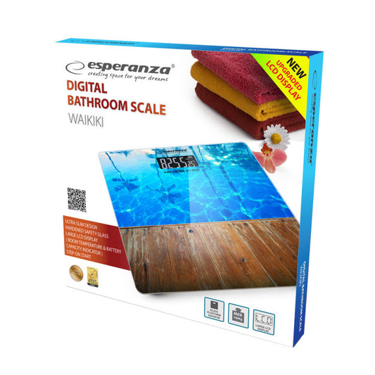 Esperanza digitális fürdőszobai mérleg - Waikiki design, üveg felülettel, 150 kg-ig mérés, LCD kijelzővel - EBS011