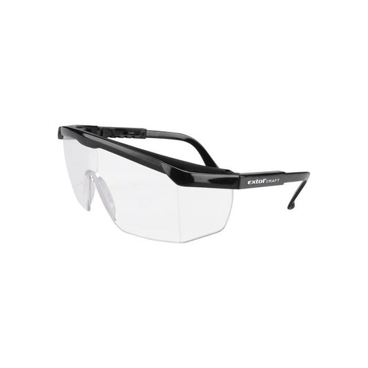EXTOL CRAFT védőszemüveg, víztiszta, polikarbonát, állítható szárú, CE, optikai osztály: 1, ütődés elleni védelmi osztály: F