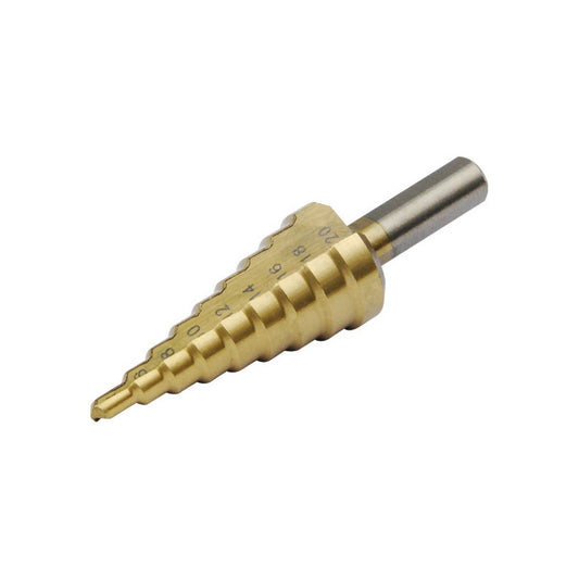 EXTOL CRAFT lépcsős fémfúró, 9 lépcsős; (4-12mm, 1mm lépcsők), befogás: 10mm, max. 4mm vastag anyagokhoz, TiN bevonat