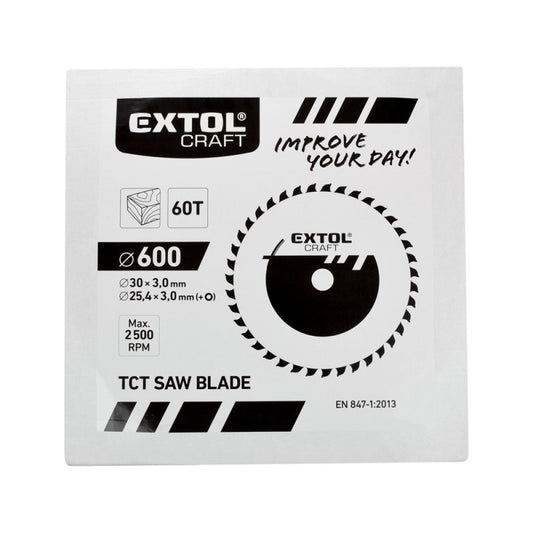 EXTOL CRAFT körfűrészlap, keményfémlapkás, 600×30mm(lyuk átm), T60; 3,8 mm lapkaszélesség, max. 2.500 ford/perc