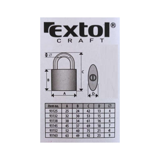 EXTOL CRAFT lakat, vas, 3 kulccsal, dobozban; 38mm