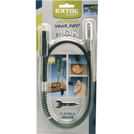 EXTOL CRAFT flexibilis szár, M18×1,5 mm; tokmány: 3,2 mm, hossz.: 107cm, max. 35000f/perc, a 404111 és 404116 mini köszörűgéphez