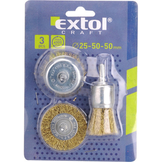 EXTOL CRAFT drótkefe klt., 3 db: réz- és rozsdamentes acél szál; 3×7 sor, 180mm, 3×12 sor, 220mm, műanyag nyél