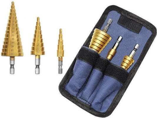Lépcsős fúró, lépcsős fúró készlet, lépcsős lyukfúró (3 db) - Ajándék tároló táskával