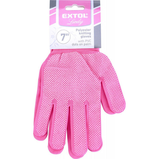 EXTOL LADY kötött kesztyű, rózsaszín, PE, fehér PVC pöttyökkel, méret: 7`, Extol Lady