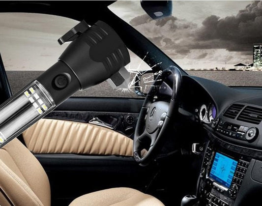 Napelemes zseblámpa biztonsági öv vágóval/ablaktörővel