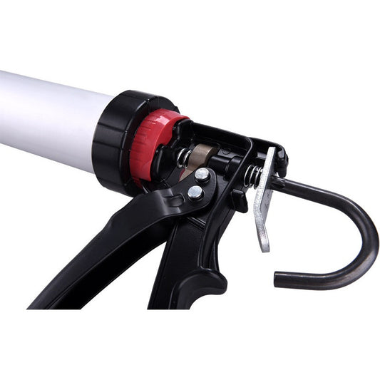 FORTUM kinyomópisztoly; fém; 225 mm, 360°-ban körbeforgatható acél bölcső tubustartóval, állítható túlfolyásgátló
