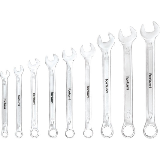FORTUM csillag-villás kulcs klt. 9db, 6-19mm 61CrV5, mattkróm, vászon tok FORTUM