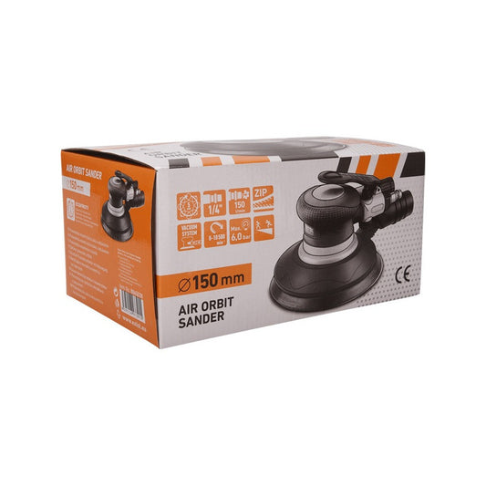 EXTOL PRMIUM pneumatikus rotációs csiszoló, 150mm, excentricitás: 5mm; 10.500 1/min, 150l/min, 6 Bar, 1/4" tömlőcsatlakozó, 0,96 kg