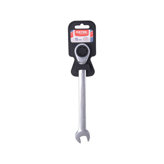 EXTOL PREMIUM racsnis csillag-villás kulcs 15mm CrV. 72 foggal, 1 irányú forgás;