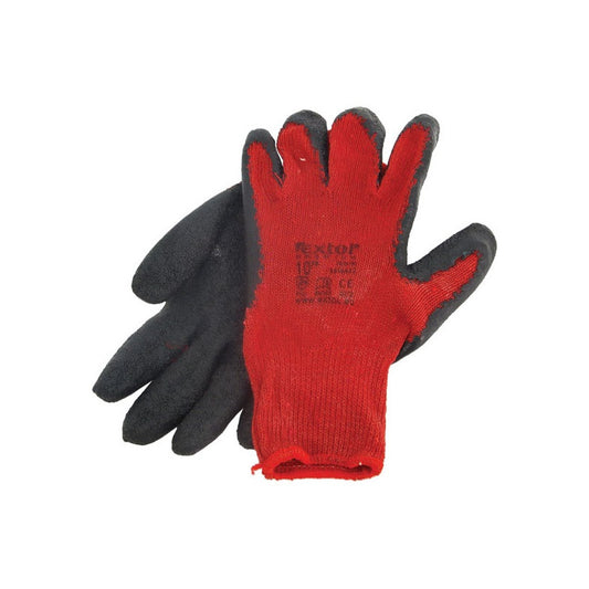 EXTOL PREMIUM kötött kesztyű, pamut, vörös, méret: 10`, latexbe mártott, csúszásgátló tenyér