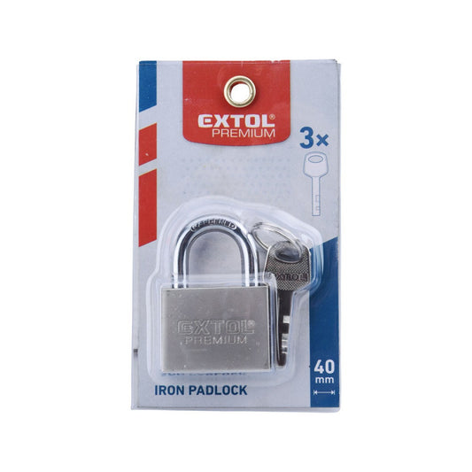 EXTOL PREMIUM lakat, laminált, vízálló, 4db kulcs; 40mm, kengyelszárátmérő:8/12mm