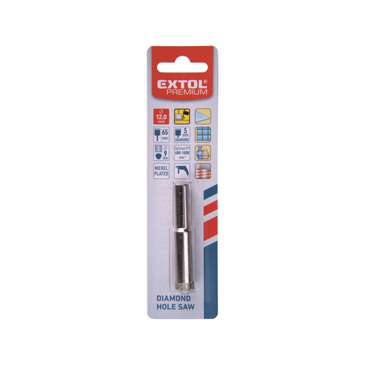 EXTOL PREMIUM körkivágó üvegre, kerámiára és csempére, gyémánt vágóél; 12×65mm, fúrógépbe fogható