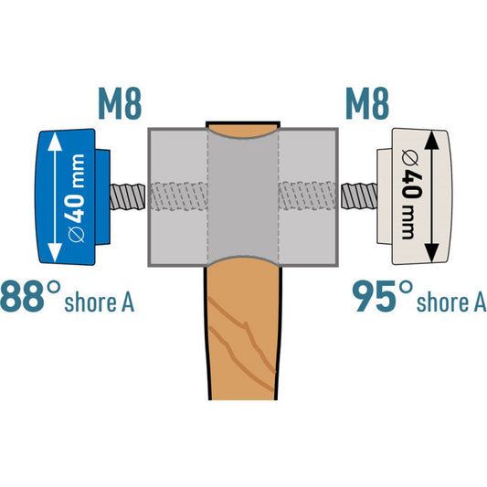 EXTOL PREMIUM gumikalapács (illesztő kalapács) fa nyéllel, cserélhető gumi fejek; 40 mm, 32 cm