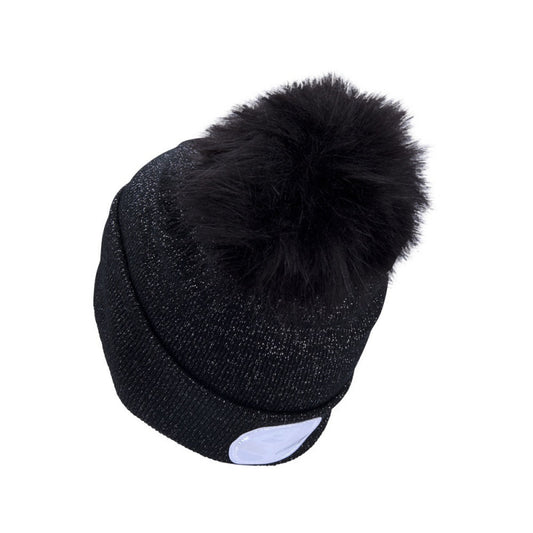 EXTOL LIGHT sapka, fekete, pomponnal, kötött, kivehető LED homloklámpával, 4×45 Lumen; USB tölthető Li-ion, 3funkció (100%-75%-50%)