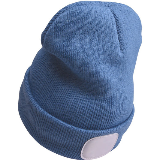 EXTOL LIGHT sapka, kék, kötött, kivehető LED homloklámpával, 4×45 Lumen; USB tölthető Li-ion akku, 3 funkció (100%-75%-50% fényerő)
