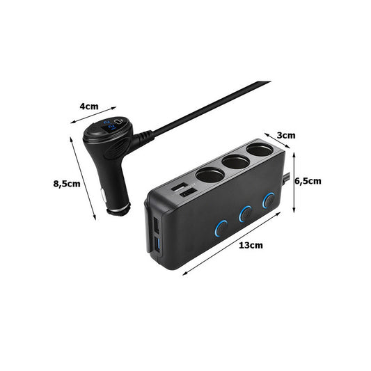 4 portos USB gyorstöltő autós adapter - 12-24V, PD, QC támogatással