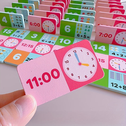 4-az-1-ben Fa Oktató Játékkészlet: Dominók, Összeadás és Kivonás, Időfelismerés