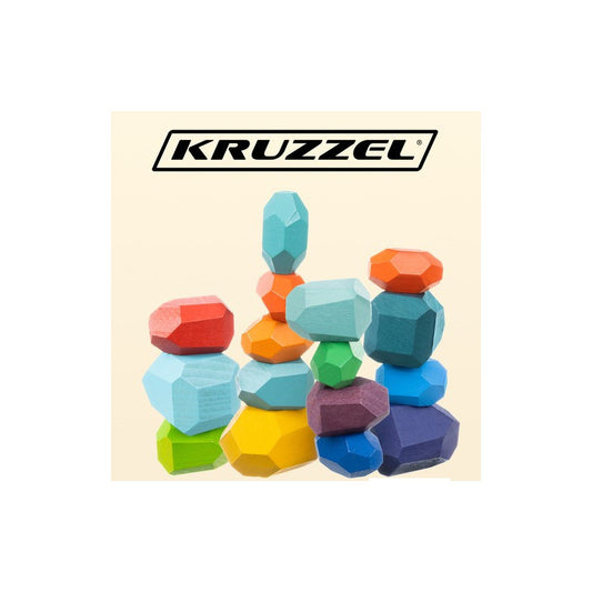 Kavics/fa építőkocka - 16 db 22475, kreatív játék, gyerekeknek, oktatási játék, színes kockák, kreatív kavicsok