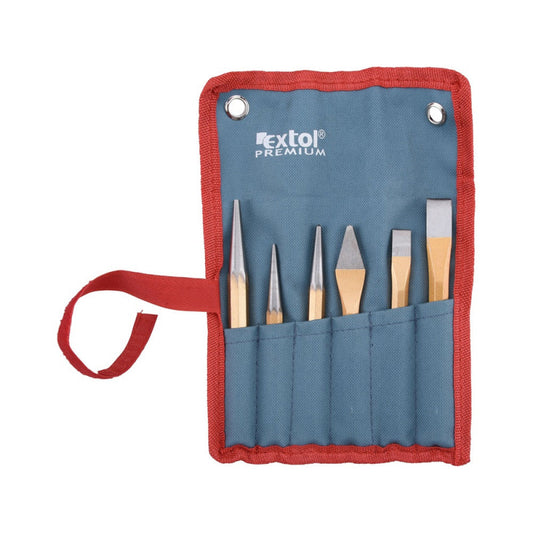 EXTOL PREMIUM lyukasztó, pontozó és véső klt. 6db CrV. HRC 52-58 ; 1db pontozó, 2 db lyukasztó, 3 db véső, hossz.:120-150mm