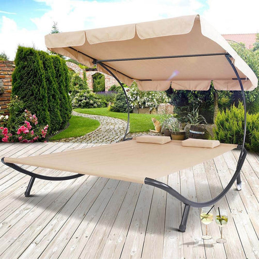 Kétszemélyes napozóágy árnyékolóval-bézs