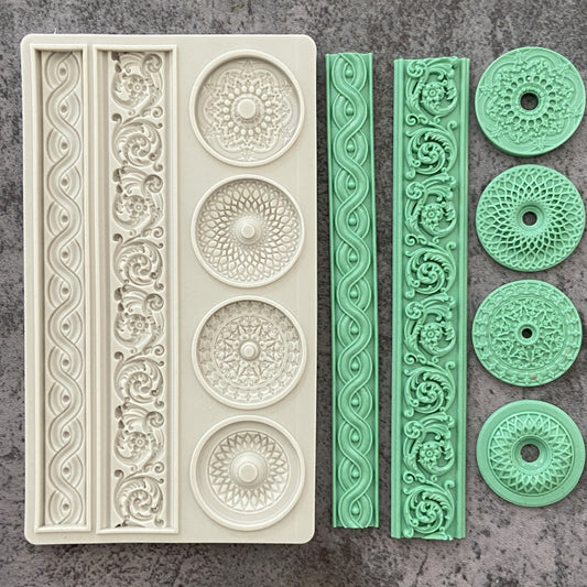 Szilikon forma tortadíszítéshez - Iránytű és domborított oszlop dizájn
