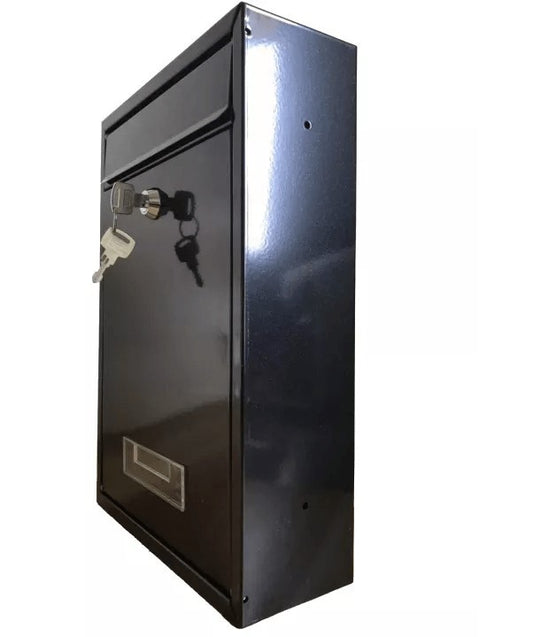 Fekete acél postaláda zárral - modern levelesláda - acél levélláda - biztonságos postaláda