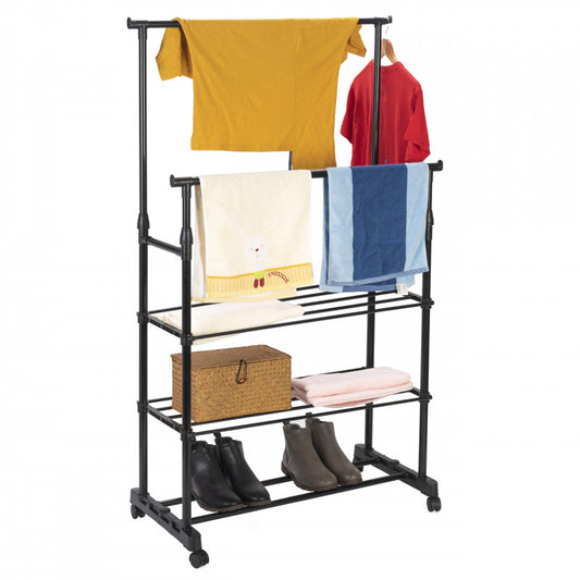 Univerzális ruhafogas kerekekkel, állítható magassággal, 2 rúddal
