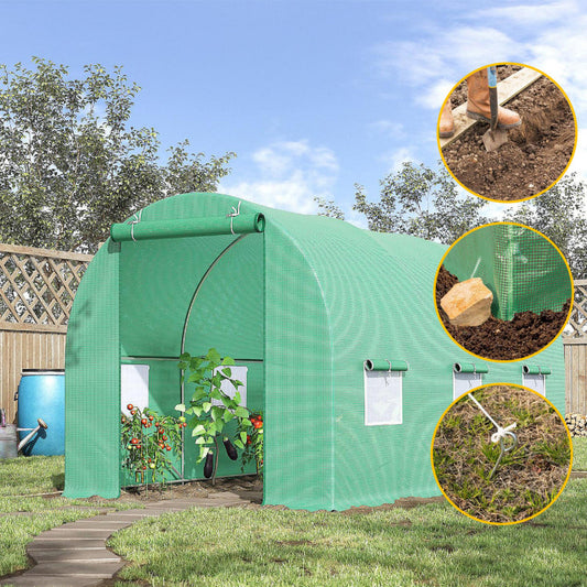 Zöldház kert fólia alagút, több évszakos fém vázzal, zöld fólia 2x3x2m