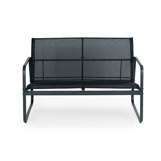 Kerti bútor készlet, fém szék vázzal, pad és fekete asztal