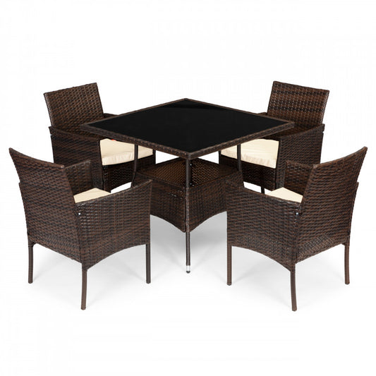 Rattan kerti bútor szett 4 székkel és üveglappal ellátott asztallal