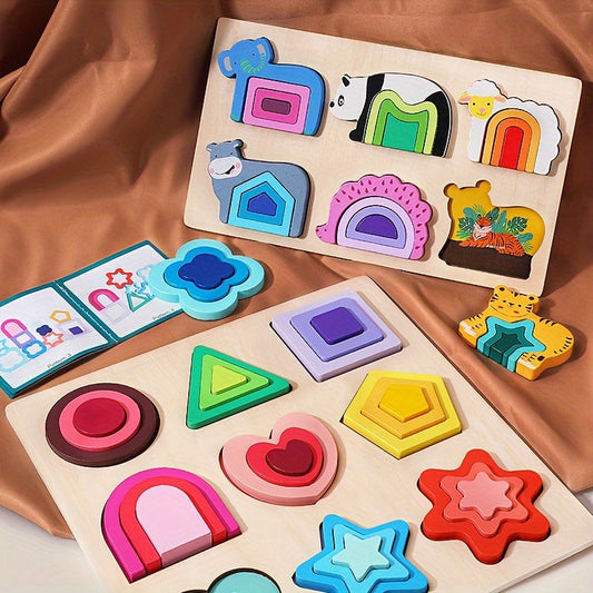Színes 3D Fa Puzzle - Fejlesztő Játék Gyerekeknek, Fejleszti az Intelligenciát és Kreativitást