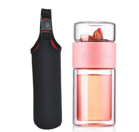 Teásbögre, teásüveg szűrővel, kulacstartó tokkal