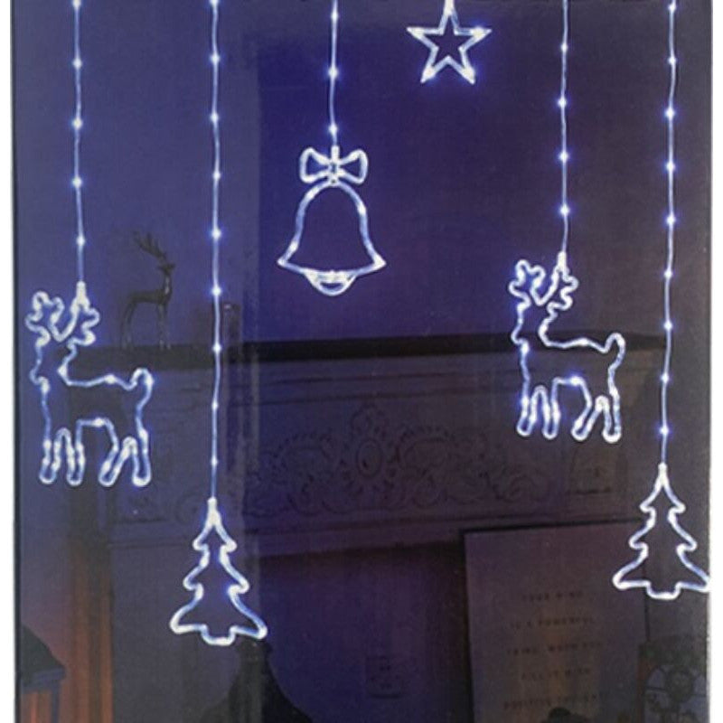 Nagy fényerejű, melegfehér karácsonyi dekorációs világítás. A fényfüggöny 300 cm hosszú. A fényfüggönyön található négy különböző forma; a csillag, a szarvas, a fenyő és a csengő pillanatok alatt meghozzák otthonába az ünnepi hangulatot. Feltűnő, mégis elegáns díszítés. A nagyobb formák és a kisebb formák belógatása váltakozó, a füzér lógó hossza összesen kb. 70 cm. A formákat tartó vezetékre is kerültek LED fényforrások, így szép, egységes fényfüggönyt kapunk.