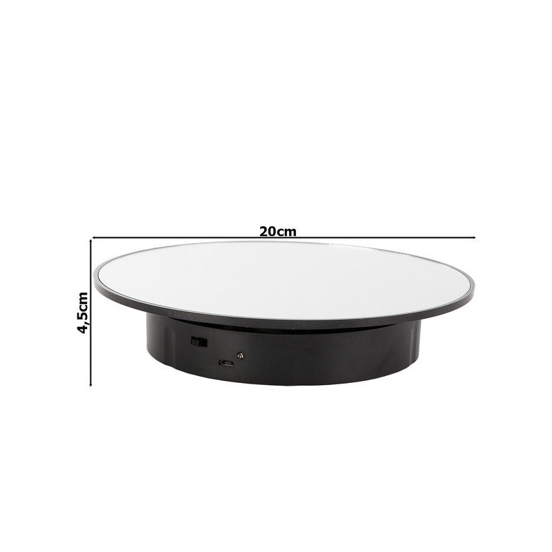 Ez a 360 fokban forgatható tükör USB fotóállvány minden fotós álma! Ideális kiegészítője lehet ékszerek, órák és más termékek bemutatására. A tükörszerű felület fantasztikus hangulatot kölcsönöz a képeidnek, és fokozza varázsukat. A forgatható állvány tökéletes választás üzletek kirakataihoz is, hogy kiemelje a kiválasztott termékeket. A működése rendkívül csendes és sima. A forgatható irány megváltoztatására is van lehetőség.