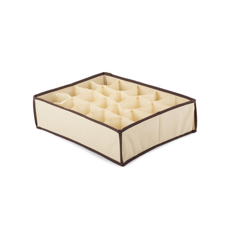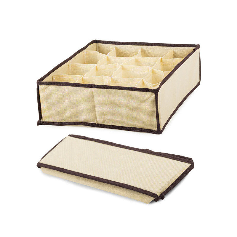 A fehérneműszervező ideális mindenféle fiókhoz vagy a szekrény aljához. 16 rekeszes, segít rendben tartani a fehérnemű fiókokat. A hordozható tároló lehetővé teszi, hogy rendezd a fiókokban összevissza elhelyezett fehérneműt, zoknit, nyakkendőt vagy öveket egyszerű és praktikus módon.