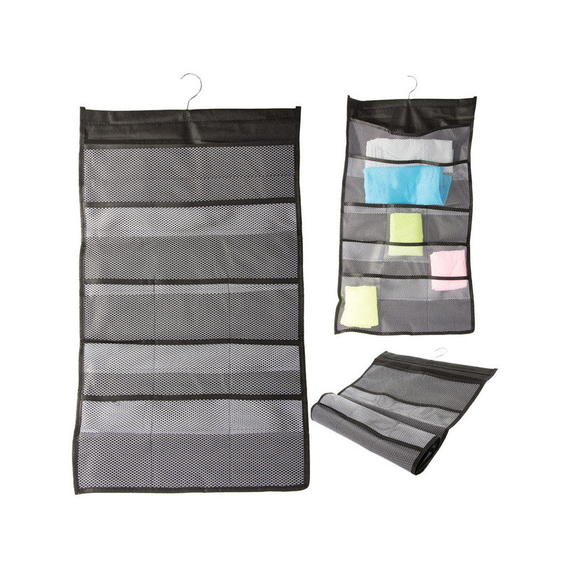 ?? A függő tároló praktikus fehérneműtárolást biztosít. 4 nagy melltartó zsebbel rendelkezik a biztonságos és kényelmes tárolás érdekében, valamint további 18 kisebb zsebbel, ideális zoknik, harisnyák vagy kisebb kiegészítők tárolására.