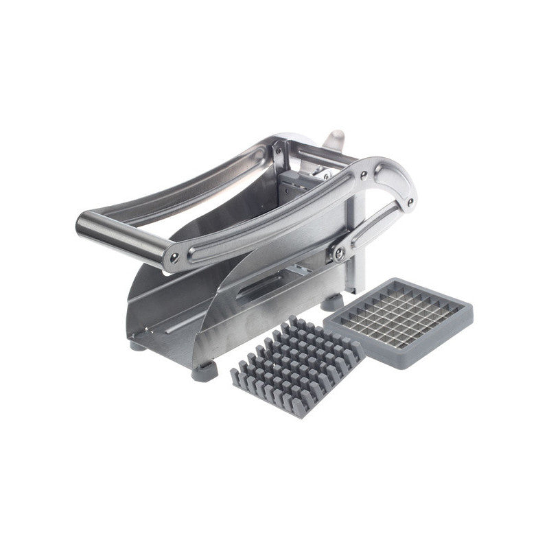 Egyszerűen csak tedd be a krumplit, nyomd meg erőteljesen, és a pengék könnyedén darabokra vágják. A szeletelő ideális más zöldségek és gyümölcsök, mint a cukkini, hagyma, paradicsom, uborka, paprika, alma, körte vagy dinnye szeletelésére is. Két cserélhető penge található benne kisebb és nagyobb krumpliszeletekhez.