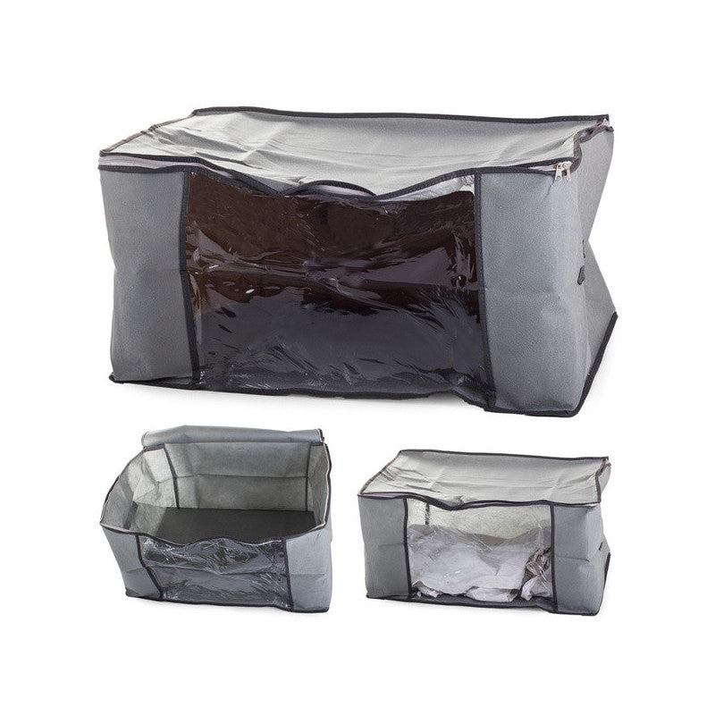 Nem szereted a rendetlenséget a szekrényedben? Szeretnél helyet spórolni otthonodban? Fogalmad sincs, hova tegyél hasznos vagy haszontalan dolgokat? A megoldás mindezekre a problémákra egy univerzális konténer cipzárral, amelyet különféle dolgok tárolására használnak, például alsónemű, zokni, játékok, ruhák, könyvek, ágynemű, cipők és még sok más. Belefér az ágy alá vagy a szekrény aljára. Lélegző anyagból készült. A konténernek praktikus fogantyúi vannak a szállításhoz és a szekrényből való kihúzáshoz.