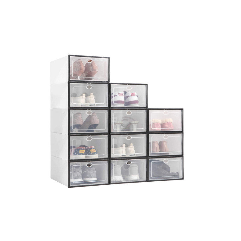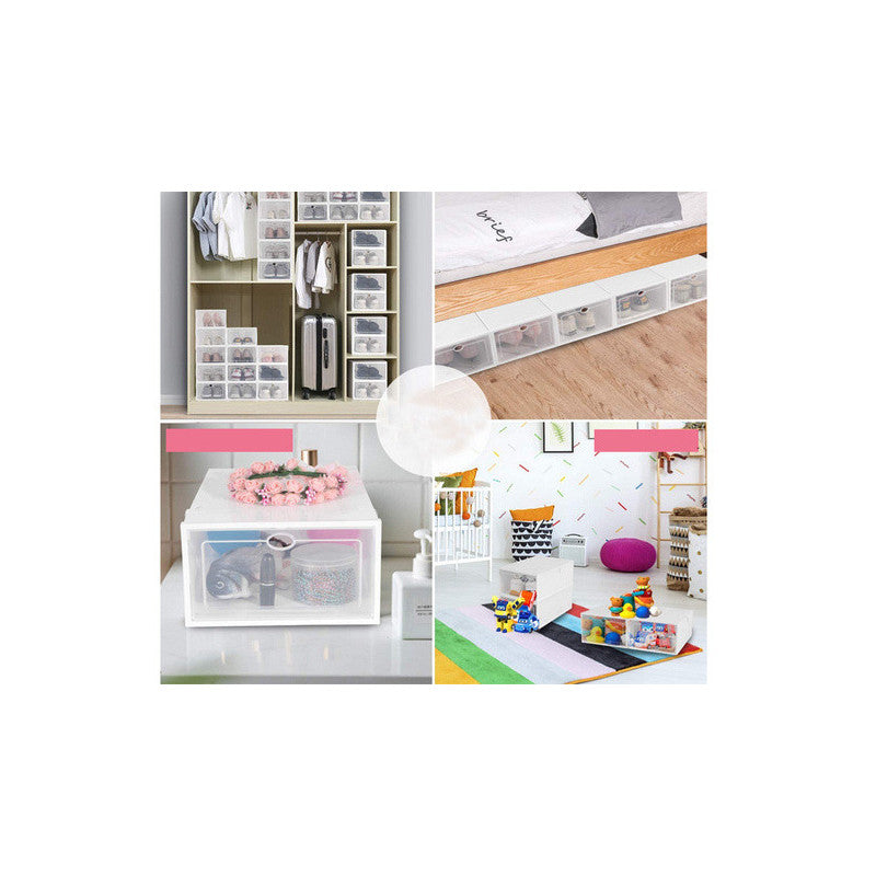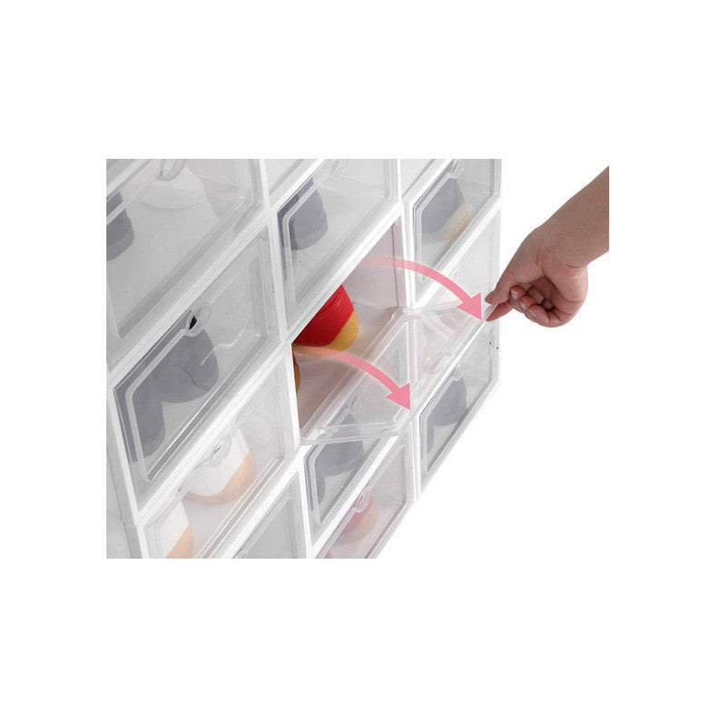 Szereted a rendet és a tisztaságot a szekrényedben? Akkor ezt a cipőtartó dobozt imádni fogod! Az organiser segít kihasználni a szekrényed vagy öltöződ helyét, és rendben tartani a dolgaidat. A dobozok moduláris szekrényt alkothatnak, bármilyen alakban, amely megfelel az igényeidnek és a szoba méreteinek. A dobozok tökéletesek hosszú távú tároláshoz, és szellőzőnyílásokkal vannak ellátva a levegő keringéséhez. Az organiserek bárhol elhelyezhetők, és tökéletesek játékok, kacatok, sapkák, sálak, kozmetikumok stb. tárolására. Az átlátszó doboznak köszönhetően nem kell keresgélned a cipőidet, mert láthatod őket a fedeles részen keresztül. Használaton kívül a doboz laposan összehajtható.