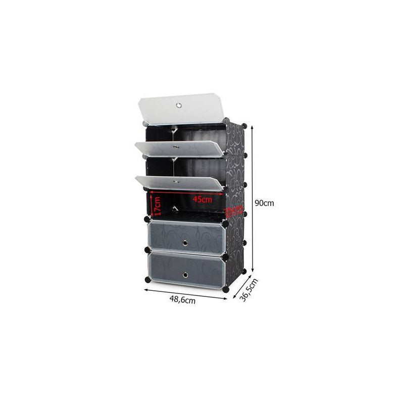 Ez a moduláris cipőtartó tökéletesen illeszkedik egy öltözőbe vagy előszobába. Egy cégben vagy irodában is jól működik. Emellett a szekrény nagyon esztétikus kialakítással rendelkezik, szép mintával, így bármely lakás stílusába illeszkedik. A cipőkön kívül a szekrényt ruhák tárolására is használhatjuk, valamint mindenféle praktikus dolog tárolására.