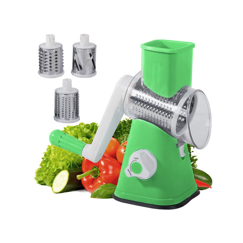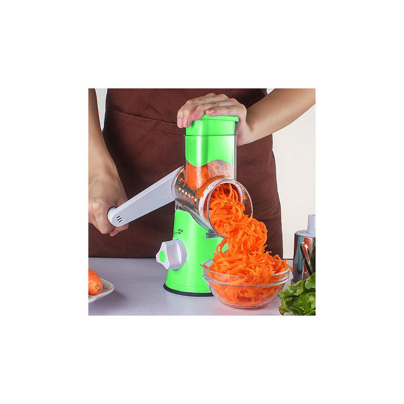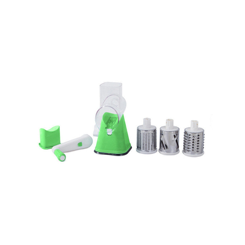 Ez a ??zúzó?? minden konyhában ott a helye! Gyorsan és hatékonyan veszi fel a versenyt a konyhai kihívásokkal. Ideális a zöldség saláták, natúr csipszek vagy szószok és zöldséglevesek hozzávalóinak elkészítéséhez. A daráló nagyon könnyen használható. Egy speciális fogantyú segítségével rögzíthető egy felülethez, például egy asztalhoz vagy pult alá. Az szívókorong biztosítja, hogy a gép ne mozduljon el és stabil maradjon. A szeletelő három dobos. A megfelelő dob a gép átlátszó nyílásába van helyezve, majd a hajtókar rögzítve. Ezt követően bármilyen hozzávalót könnyedén aprítani lehet.