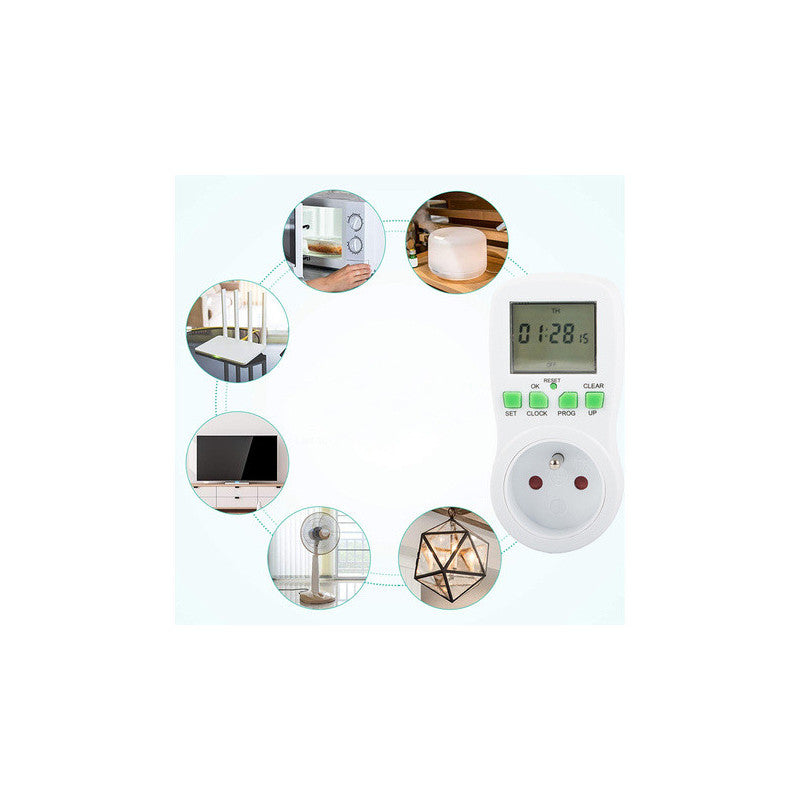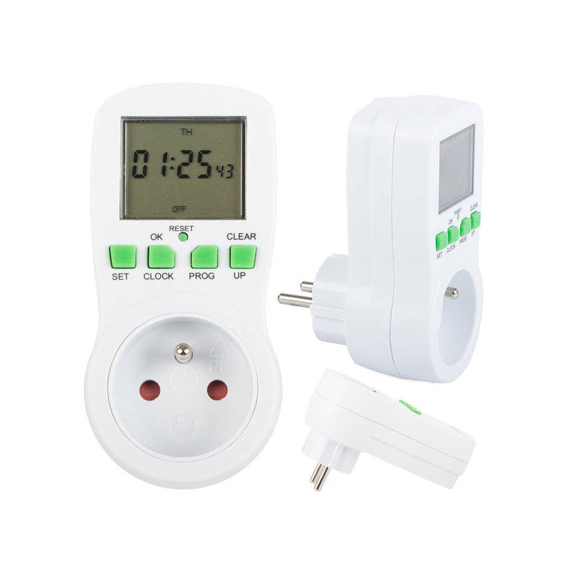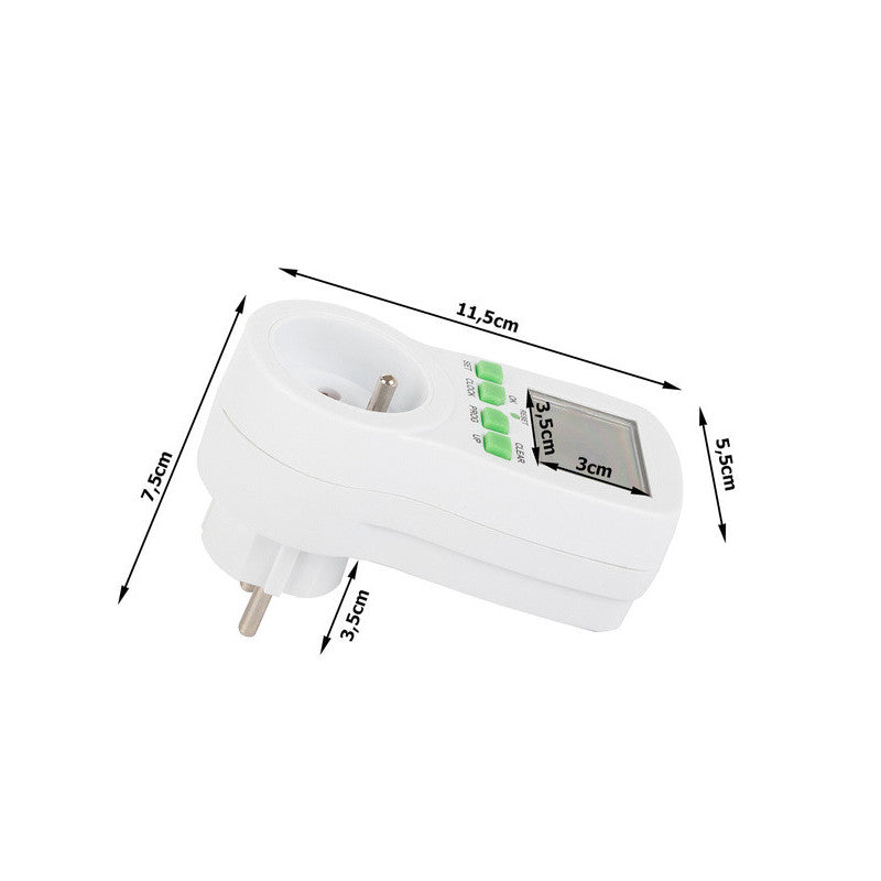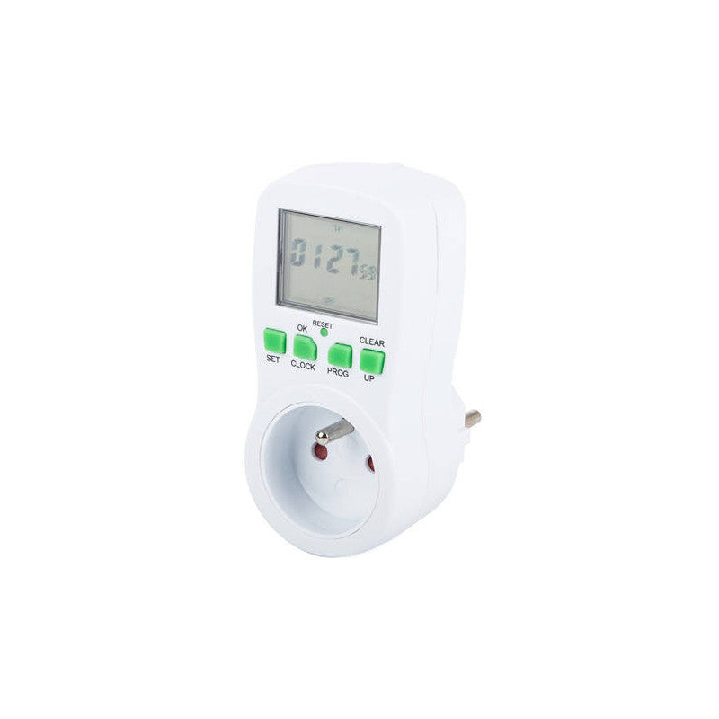 Ez a digitális időzítő kapcsoló otthoni készülékek áramellátásának vezérlésére lett tervezve. Beépített akkumulátorral rendelkezik az időzítő működtetéséhez. Az időzítő kapcsoló használható különböző készülékek automatikus be- és kikapcsolására, elektromos fűtés és szobavilágítás vezérlésére, valamint otthoni jelenlét szimulálására. Az eszköz használatával energiát lehet megtakarítani. Az időzítő nagy, könnyen olvasható LCD kapcsolóval van ellátva.